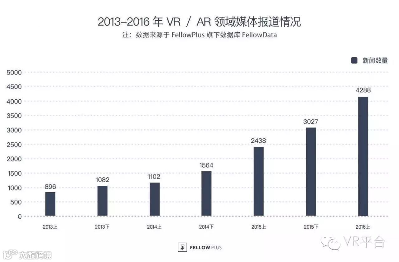 从媒体报道的数量来看,VR/AR 领域的新闻报道数量从 2014 年开始持续升高,今年上半年媒体报道数量接近 14 年同期的 3 倍。