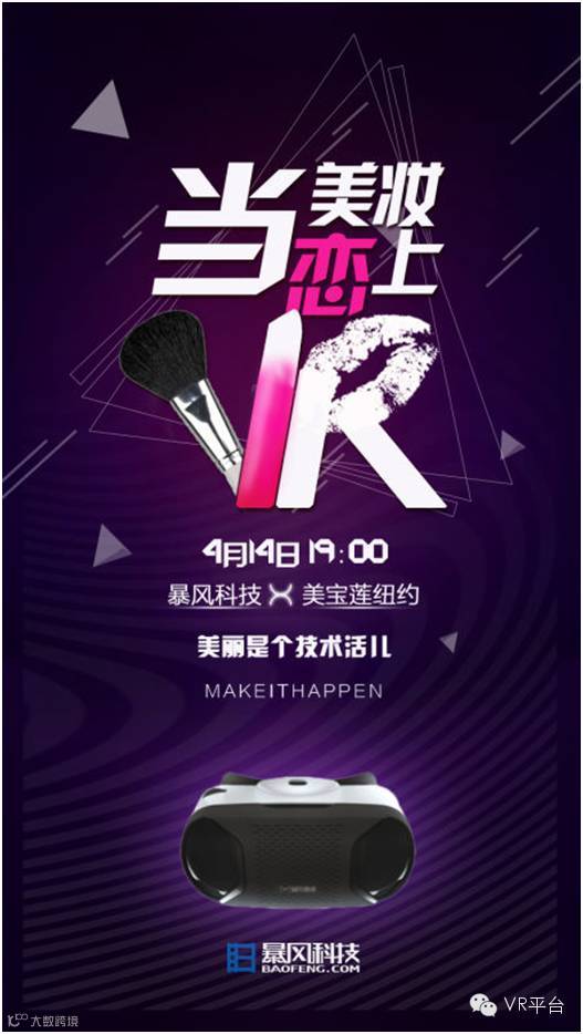 本次双方的合作是化妆品品牌首次尝试利用VR技术拍摄广告片,同时也标志着暴风科技试水时尚美妆行业获得了成功,为美宝莲纽约这一高街彩妆品牌带来了更多科技范儿,双方共同呈现出了“不一样的美丽”等新时尚元素。