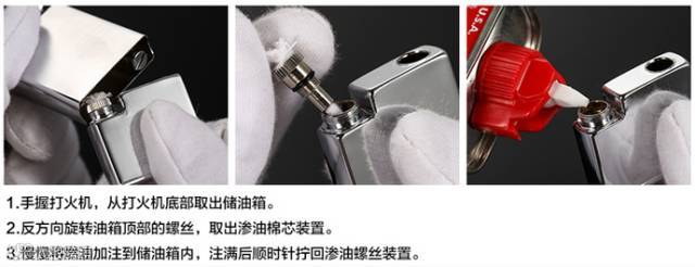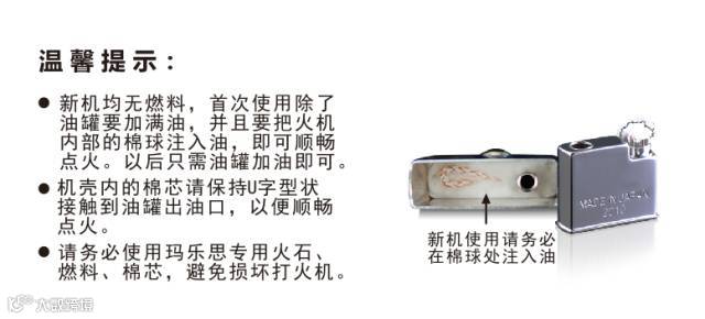 2、请注意第一次使用玛乐思火机,除了油罐要加满油,并且要把火机内部的棉球注入一些油,即可顺畅点火。以后只需油罐加油即可。