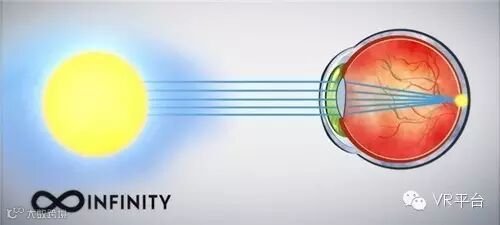 如果眼睛注视着远方,那注视点是无限远的。也就意味着光线是平行的,晶状体处于休息状态。