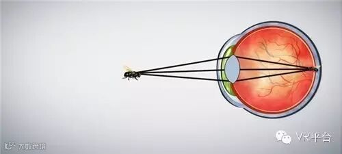 如果苍蝇靠近太近的话,晶状体弹性不够,无法弯曲,眼睛就失去了焦点。这就是为什么头显需要特制的透镜,以便能修正晶状体的光源的角度,重新被人眼读取。
