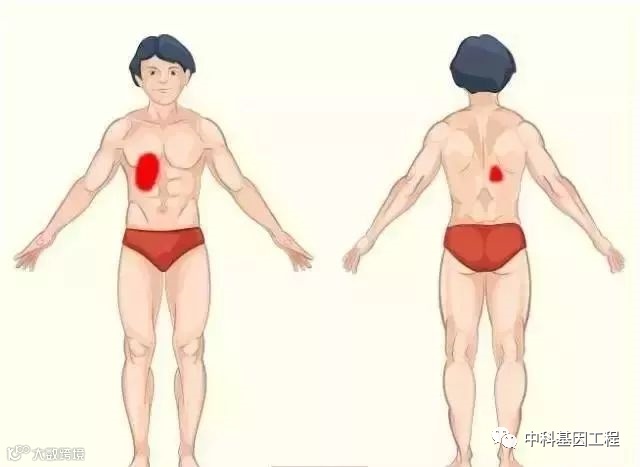 胃出现问题,中腹部会疼痛,背部同一位置也会疼痛。胃、食道引发的疼痛经常与心脏引发的疼痛混淆,最好去看医生。