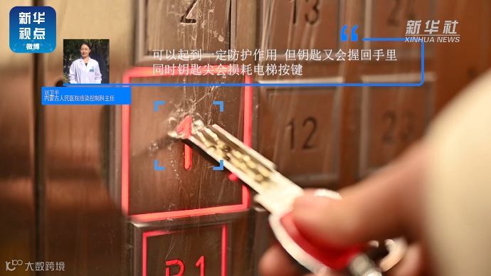 【不直接触碰按键,用钥匙摁电梯按键】