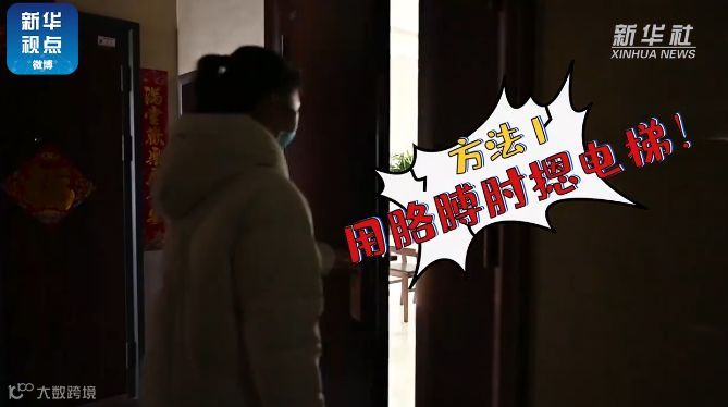 【不直接触碰按键,利用肘部摁电梯按键】