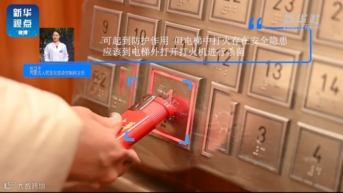 【不直接触碰按键,利用打火机摁电梯按键】