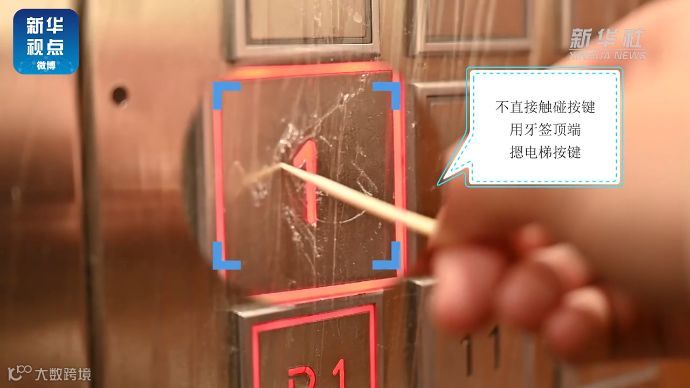 【不直接触碰按键,用牙签顶端摁电梯按键】