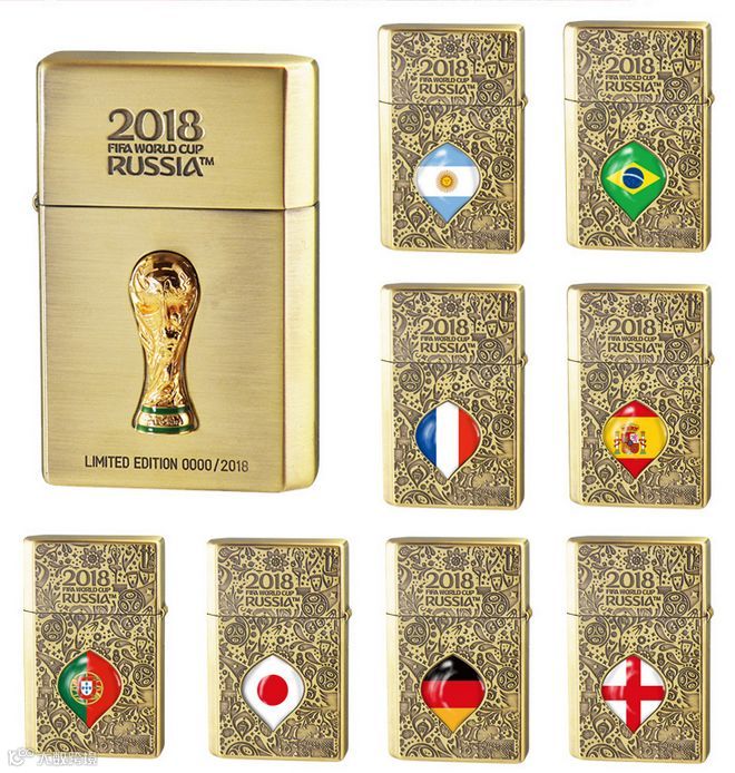 本届世界杯火机分为限量款及基础款系列。限量款全球限量2018个,为全铜机身,每一个火机正面都镶嵌一个1:15的大力神杯原形贴章;背面则是精选八小组,最受欢迎的九大球队国旗配合以腐蚀工艺处理,更具精致优雅。