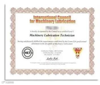 学员通过考试成绩合格,将获得国际机器润滑工程师(MLTI、MLTII)、机器润滑剂分析师(MLAI 、MLAII)证书,该证书可在国际机器润滑协会网站(www.lubecouncil.org)查询。认证均符合国际ISO18436-4/5要求。