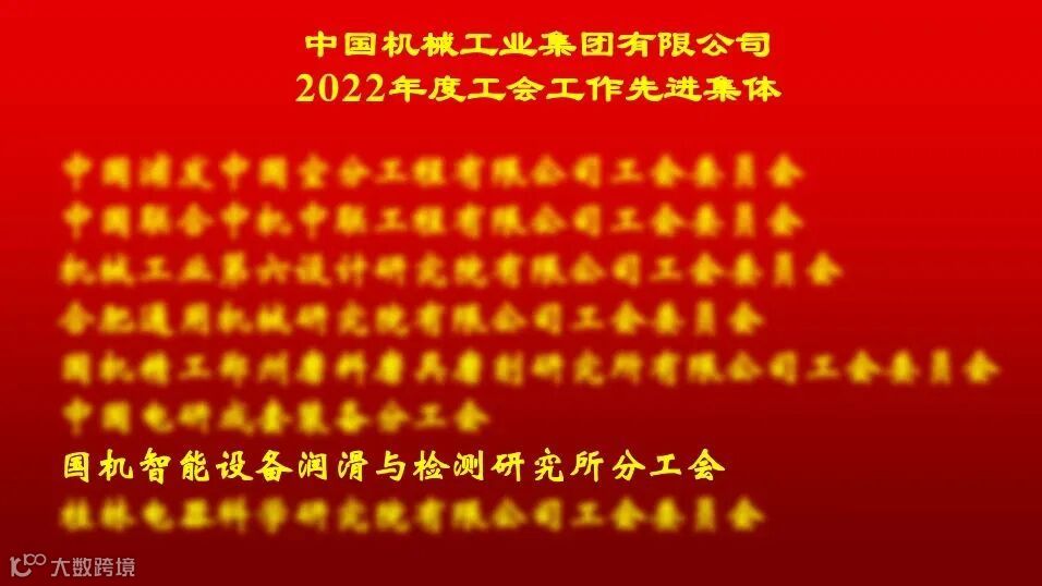 近日,国机集团工会在2023年工作会上对先进集体和优秀工作者进行表彰。我司设备润滑与检测研究所分工会荣获集团工会2022年度“工会工作先进集体”荣誉称号。
