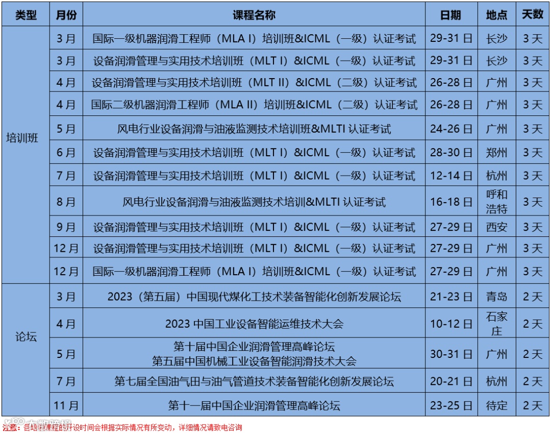 培训课程及论坛计划表