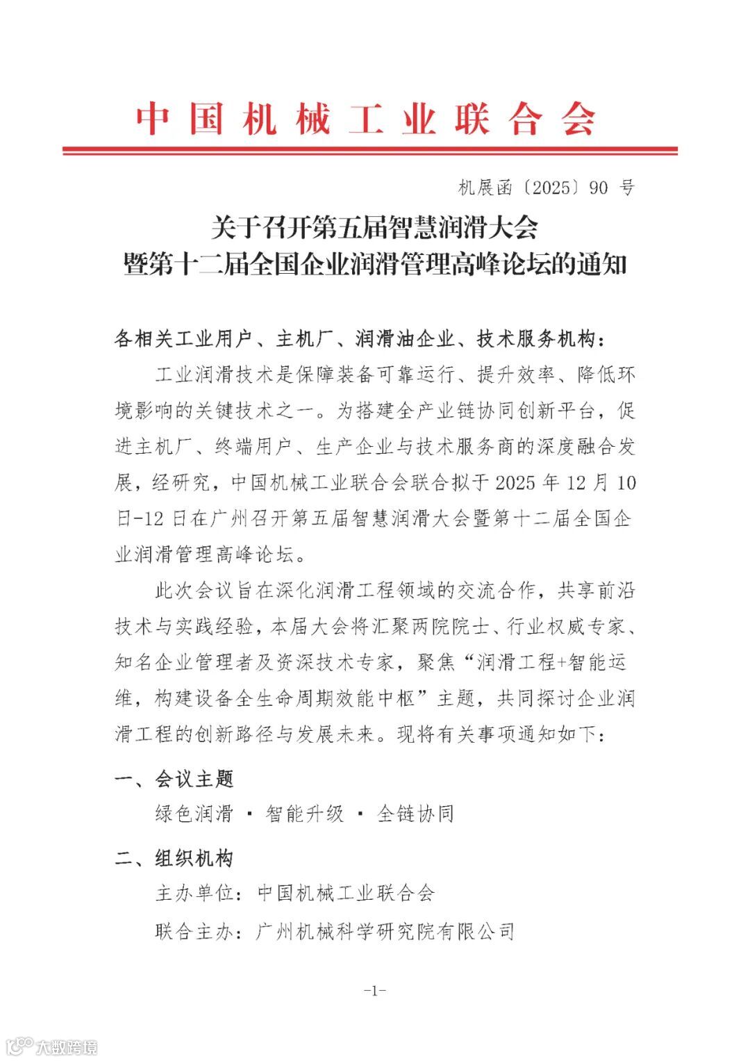 【CELMF论坛】关于召开第五届智慧润滑大会暨第十二届全国企业润滑管理高峰论坛的通知