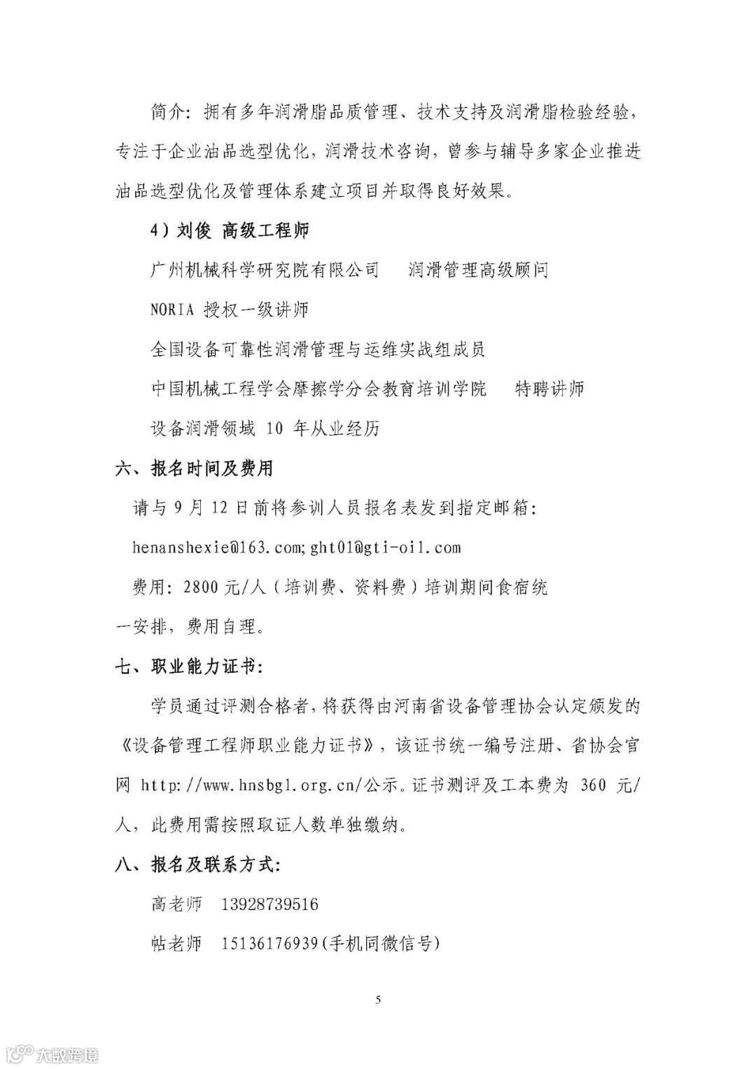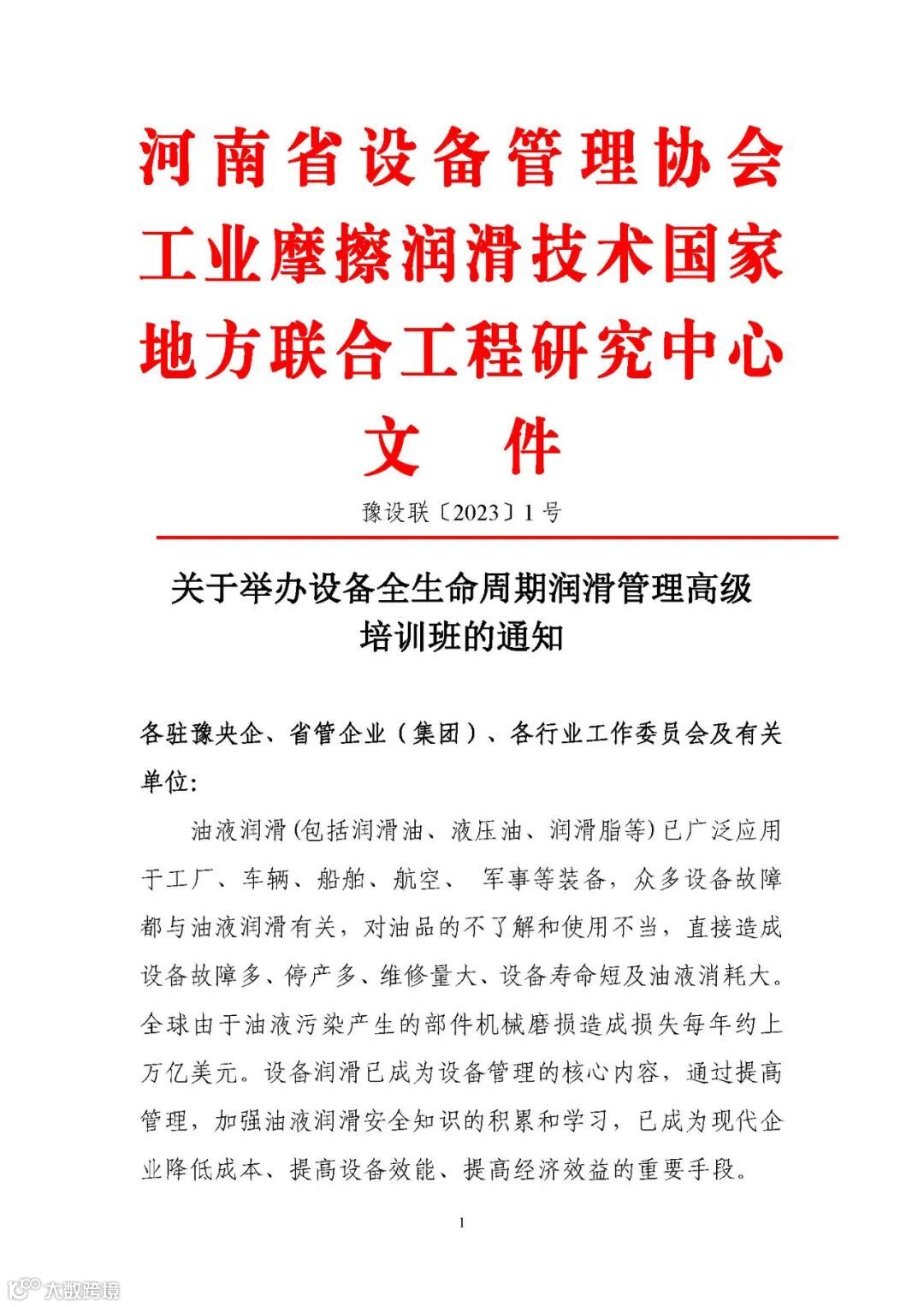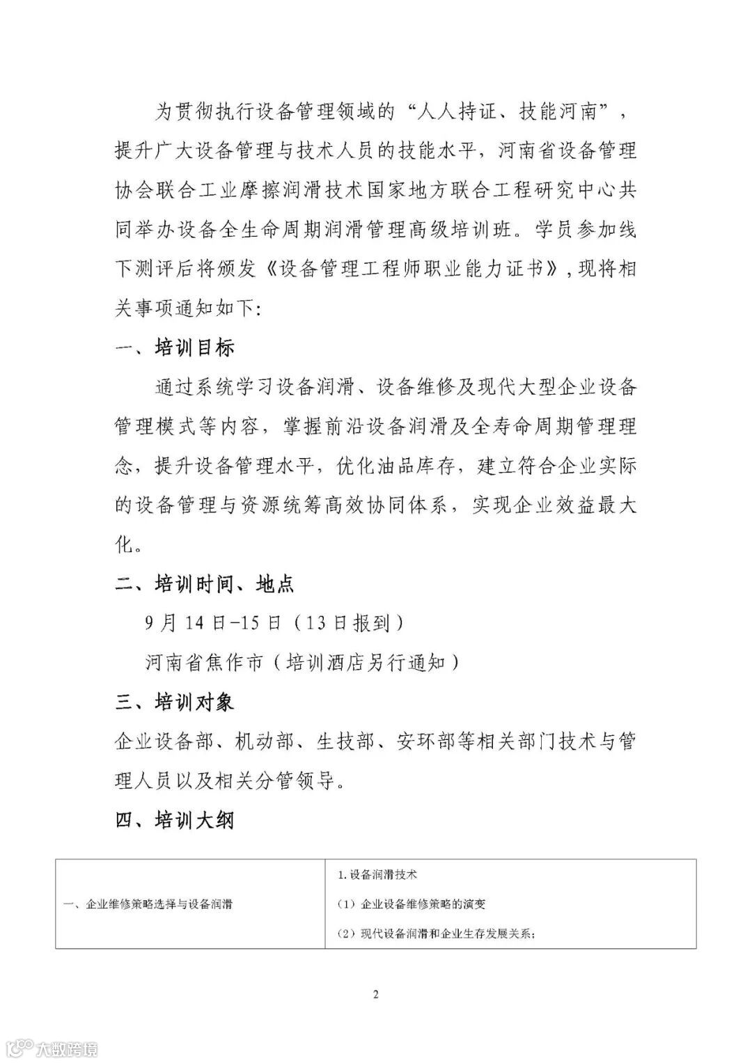 【培训通知】关于举办设备全生命周期润滑管理高级培训班的通知