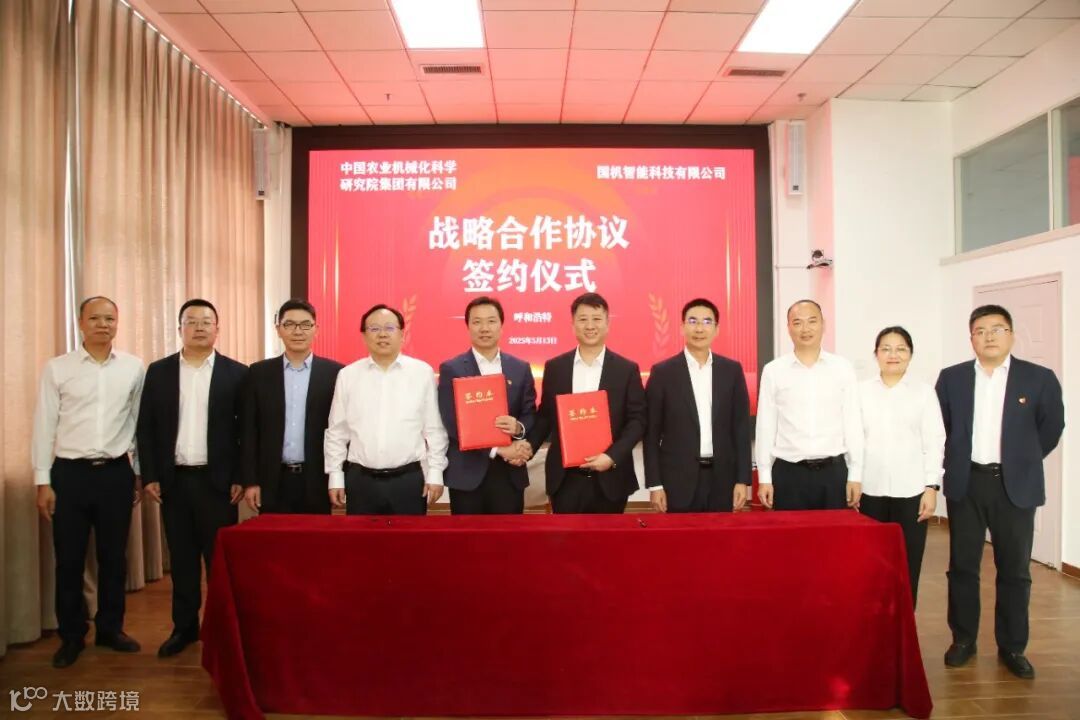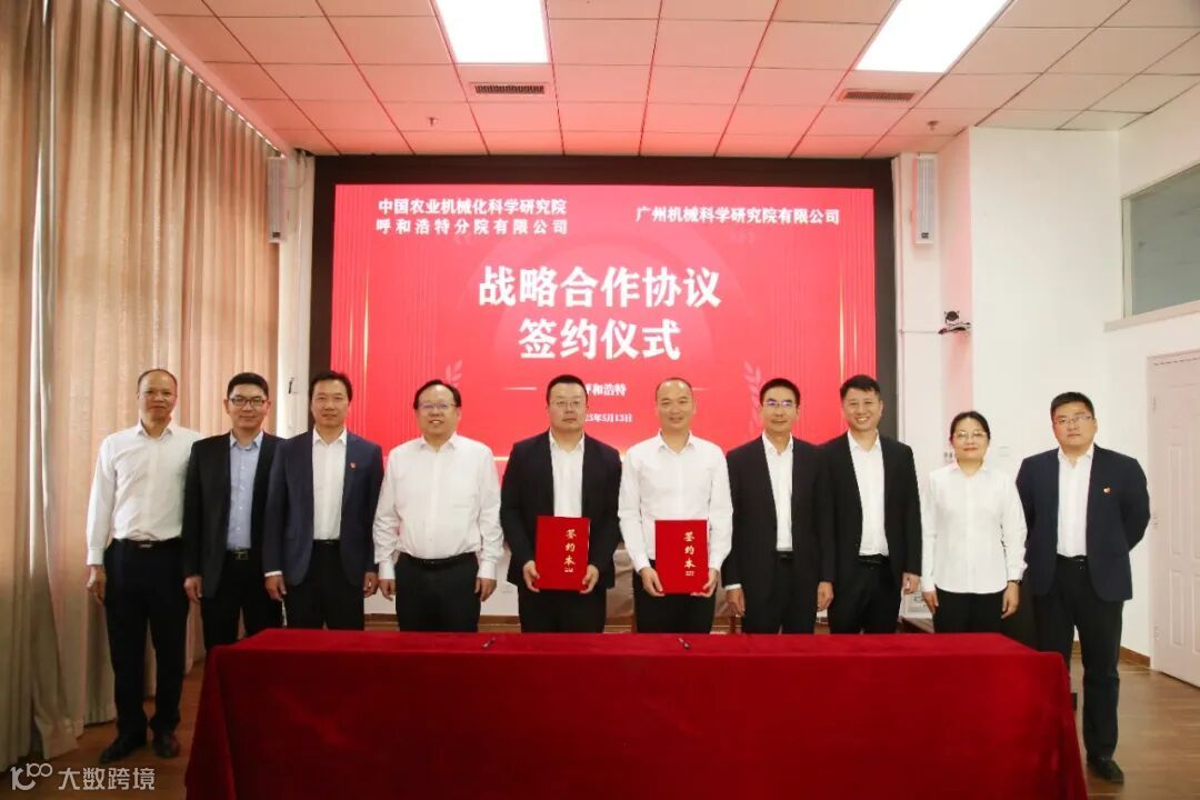 5月13日,为加强与国机集团内部企业的合作,国机智能与中国农业机械化科学研究院集团有限公司(简称“中国农机院”)在呼和浩特举行战略合作签约仪式。国机智能党委书记、董事长纪学成,中国农机院党委书记、董事长马敬春出席签约仪式并为联合实验室揭牌。