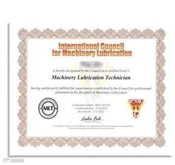 学员通过考试成绩合格,将获得国际机器润滑工程师(MLTI、MLTII)、机器润滑剂分析师(MLAI 、MLAII)证书,该证书可在国际机器润滑协会网站(www.lubecouncil.org)查询。认证均符合国际ISO18436-4/5要求。