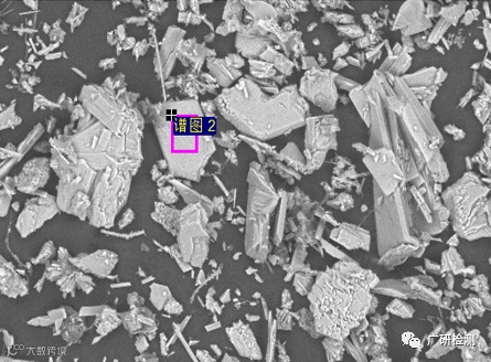 采用电镜-能谱仪对未知固体颗粒进行检测,可以得出异物的主要元素组成,结合其形貌特征,可以大致判断出异物的成分,进而分析出其来源。