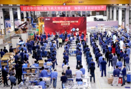 国机智能8日在总装车间交付了第100台口罩机。交付仪式上,我司负责人介绍,目前企业已研制出N95口罩机的样机,下一步还将研制儿童口罩机。