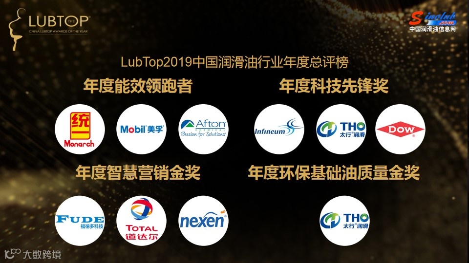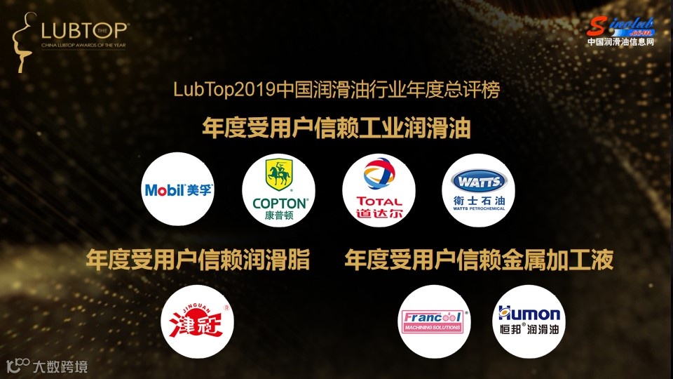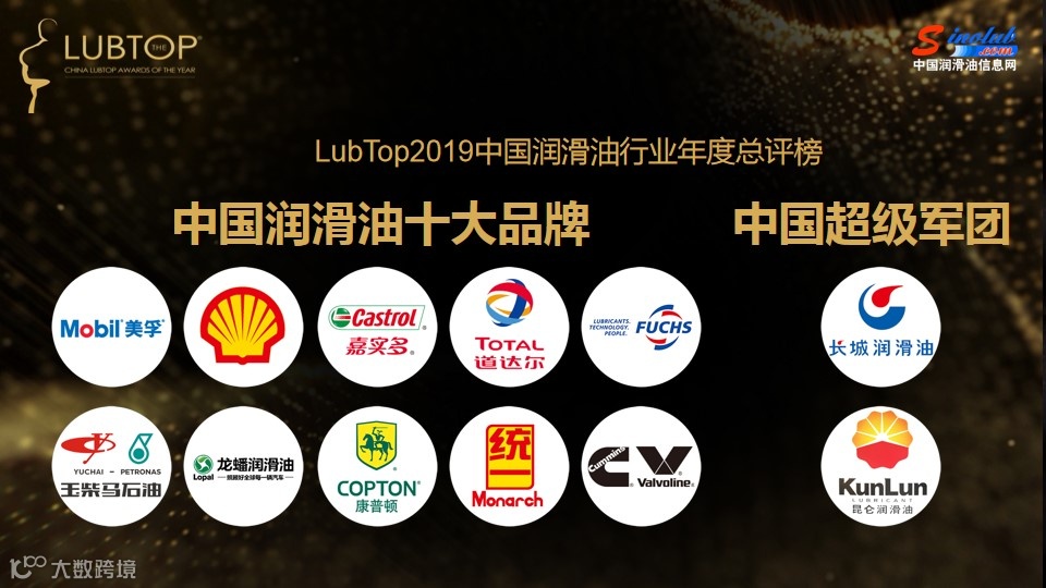 据组委会介绍, “LubTop2019总评榜”历时7个多月,在申报企业数、获得提名、品牌含金量,公众投票人数等方面再创新高,是市场调研深入、在汽车后市场和设备润滑领域极具影响力的一次全国性行业公益评选活动。这是集结了设备润滑领域和中国汽车后市场体量巨大且极具活力的国内外优秀润滑油品牌,掌控了中国润滑油市场份额和强大产能的核心力量秀。全球著名品牌美孚、壳牌、嘉实多领衔、润滑油行业主流品牌共同参与角逐,经过通过资格海选、公众投票、市场调研、媒体评议、专家评审等环节,评选出行业一批优秀的获奖品牌。从LubTop大数据看,行业公众投票移动端总投票数破800万票,PC端和移动端投票页面全程浏览超过6800万人次,在车主和渠道、用户终端形成了巨大的影响力;从LubTop总评榜品牌荣誉指数看,各大获奖品牌线上线下渠道的大数据和权重系数所获取的目标函数值,均在72分以上,头部效应明显,行业竞争格局初定。