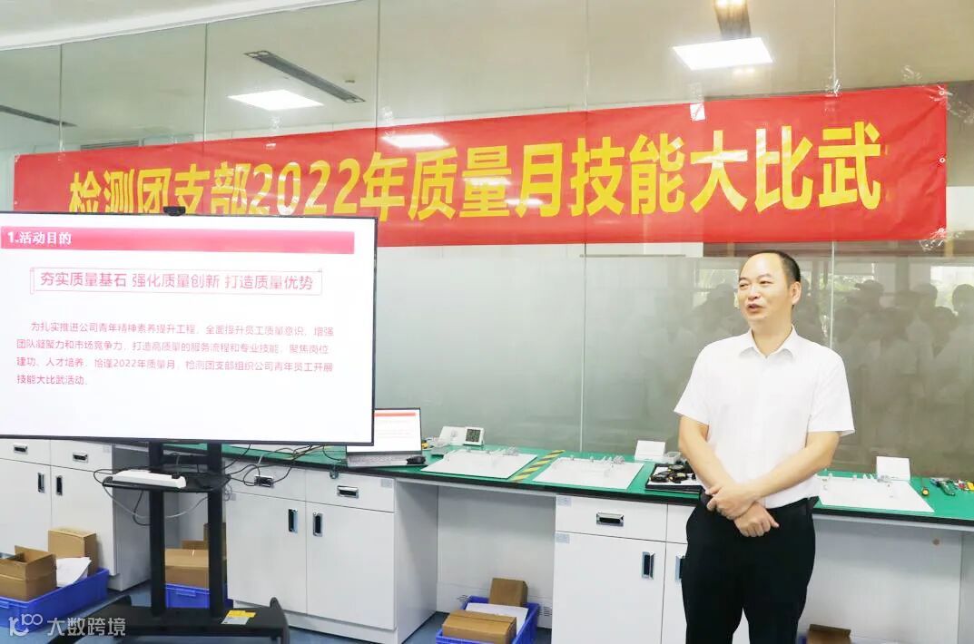 9月20日,为扎实推进青年精神素养提升工程,全面提升员工质量意识,检测团支部开展2022年质量月技能大比武活动。广研检测(广州)有限公司总经理钟龙风发表赛前动员讲话。