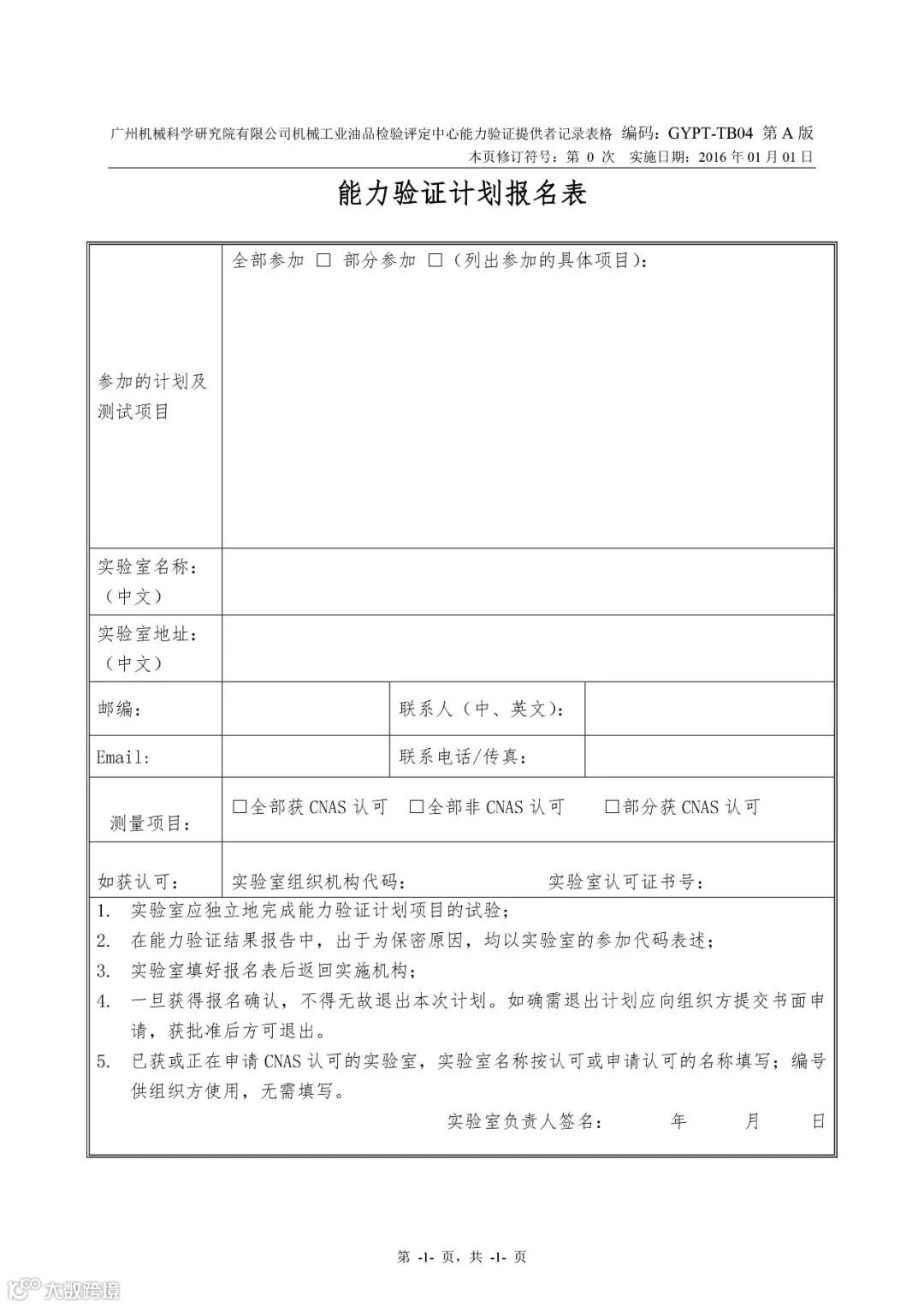 请参加实验室填写《能力验证计划报名表》报名,发至ptp@gti-oil.com。;