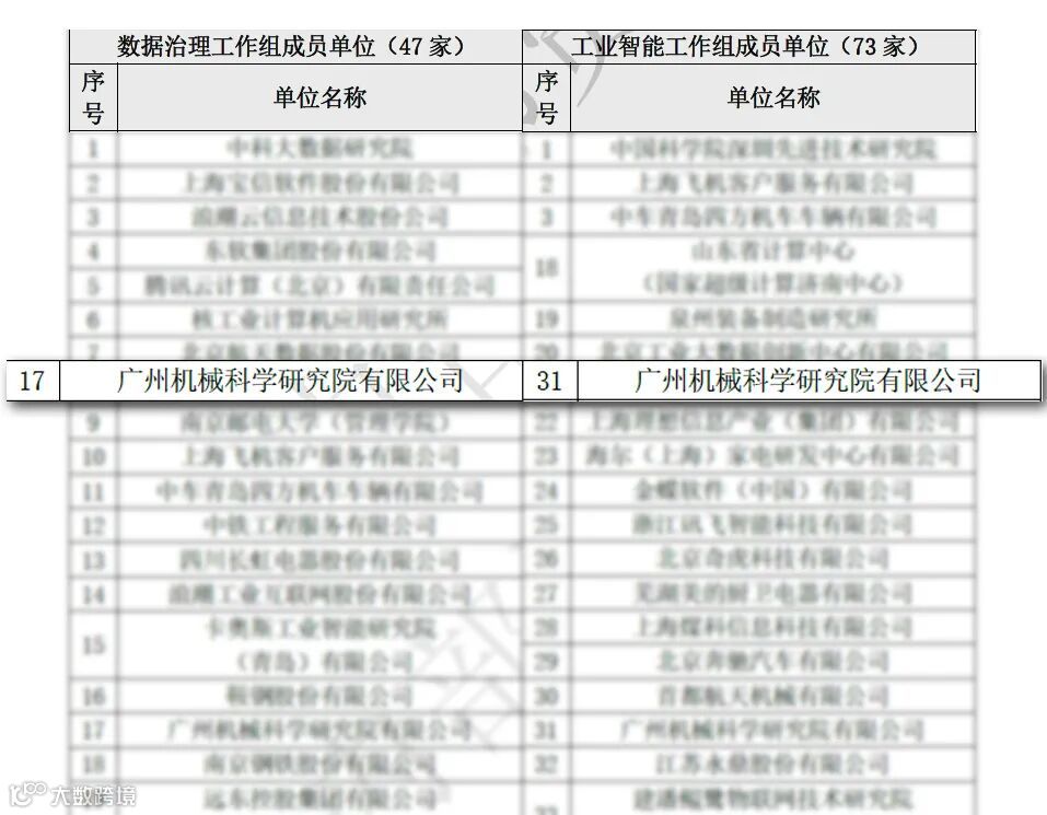 工业大数据分析与集成应用工业和信息化部重点实验室(以下简称:重点实验室)在国家工业信息安全发展研究中心牵头下,围绕工业大数据技术协同攻关、生态构建及应用,面向全国开展了工作组征集工作。广州机械科学研究院有限公司(以下简称:广州机械院)成功入选数据治理工作组和工业人工智能工作组。其中,数据治理工作组成员单位有中科大数据研究院、上海宝信软件股份有限公司、腾讯云计算(北京)有限责任公司、核工业计算机应用研究所等47家单位,工业智能工作组有中国科学院深圳先进技术研究院、鞍钢股份有限公司、中车青岛四方机车车辆有限公司等73家单位。后续将会在重点实验室的组织下,与成员单位开展润滑安全监测与预警等工业大数据关键技术的协同攻关。