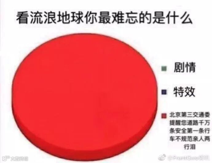 没有大牌演员,很难操刀的科幻题材,份量最少的排片,结果后来居上问鼎票房冠军,好多人看过之后,都不相信是中国人拍的。不光逆袭为春节电影档的票房黑马,最近《流浪地球》又变成了交通安全宣传片,各地交警都来花式“蹭”热点。