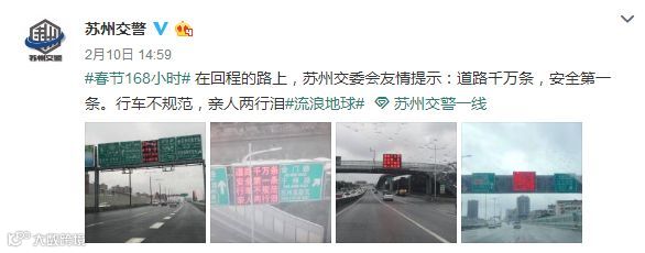 苏州交警立马安排上了《流浪地球》魔性标语覆盖苏州高架。