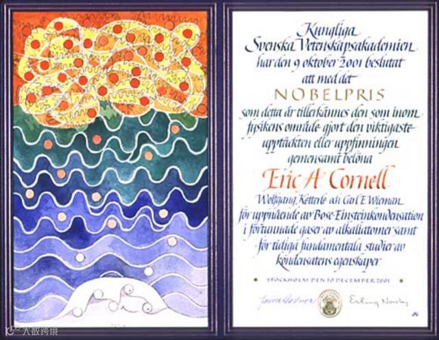 埃里克·康奈尔因为“玻色-爱因斯坦凝聚态”的研究获得了2001年的物理学奖。这种凝聚态是一种“相”,气态、超流性,康奈尔研究的是在碱金属原子稀释气体中(制成)玻色-爱因斯坦凝聚。