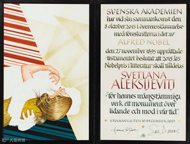 ▲ The Nobel Prize in Literature 2015-Svetlana Alexievich/Artist: Jens Fänge/Calligrapher: Annika Rücker
