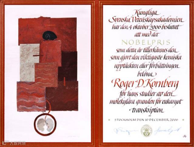 ▲ The Nobel Prize in Chemistry 2006-Roger D. Kornberg/Artist: Ulla Kraitz/Calligrapher: Annika Rücker