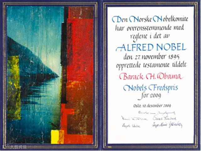 这是奥巴马的和平奖证书,说实话不太能看得懂艺术家想表达什么……