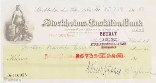 怎么样,看了之后是不是有好好学习、以后也得诺贝尔奖、让艺术家帮你画一幅美美的插画?当然,获得诺贝尔奖还有一个好处……就是前面提到的克里克的奖金支票……在当时是8万多瑞典克朗。(哈哈)