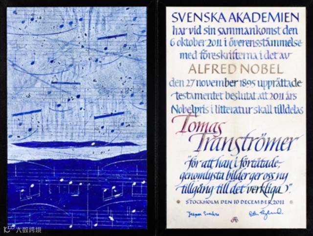 ▲ 这是 2011 年诺贝尔文学奖得主 Tomas Tranströmer 的获奖证书。