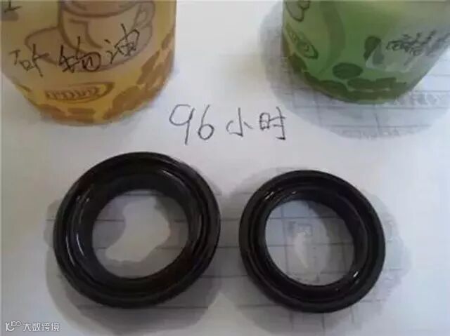96小时后,橡胶件膨胀20%,足以导致整机制动效果失效。