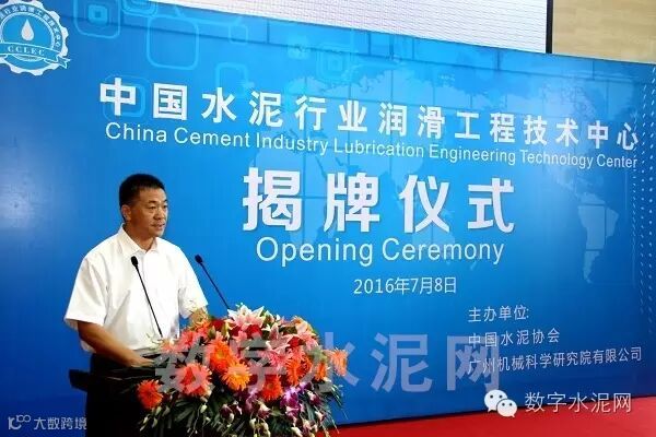 揭牌仪式上,中国水泥协会常务副会长兼秘书长孔祥忠、广州机械科学研究院有限公司总经理彭兵、中国石化长城润滑油公司副总经理寇建朝、山东山水集团公司副总经理陈仲圣、广东省水泥协会秘书长许日昌等分别致辞。孔祥忠秘书长在致辞中指出:中国是水泥生产和消费大国,水泥产量占世界水泥产量约60%以上。截止到2015年底,水泥企业有3000余家,中国新型干法水泥生产线累计达到1764条,设计熟料产能达18.1亿吨。2015年水泥产量达到23.5亿吨。因此,重视和加强水泥企业装备润滑管理,不仅能确保设备长期安全运行,降低设备运行能耗,也能降低生产成本,减少污染物排放。工程技术中心将通过宣传先进的绿色润滑理念,开展技术管理培训与服务,将会有力促进水泥企业开展 “资源节约型、环境友好型”企业建设, 进一步推进企业的节能减排工作。