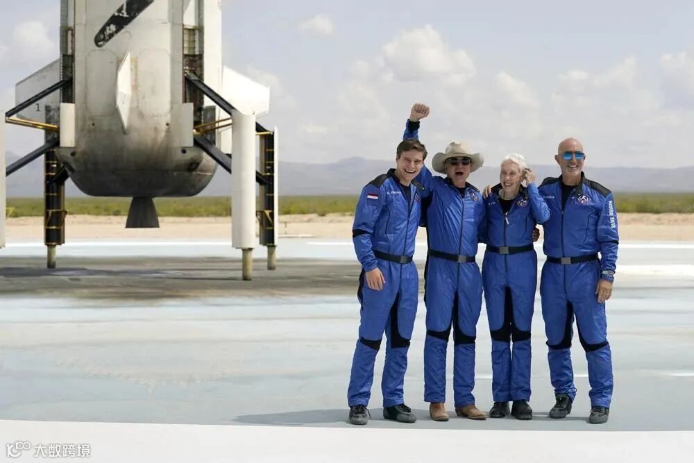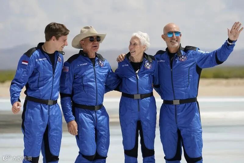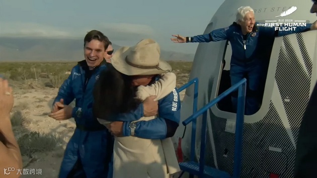 تىلغا ئېلىشقا ئەرزىيدىغىنى شۇكى، بۇ بىر قېتىملىق يالغۇز ساياھەت ئەمەس. جېف بېسوس بىلەن بىللە يەنە ئۈچ نەپەر« ساياھەتچى» بار، ئۇلار ئۇنىڭ ئىنىسى مارك بېسوس (سولدىن بىرىنچى كىشى) ، 18 ياشلىق فىزىكا كەسپىي ئوقۇغۇچىسى ئولىۋېر دېمان (ئوڭدىن ئىككىنچى كىشى) ۋە 82 ياشلىق ئايال ئالەم ئۇچقۇچىسى ۋولى فىنك (ئوڭدىن بىرىنچى كىشى).