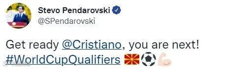 شىمالىي ماكېدونىيە زۇڭتۇڭى پېنداروۋىسكى ئالاقە تورىدا خەت يىزىپ : «رونالدو تەييارلىق قىل!» دەپ يازىدۇ .