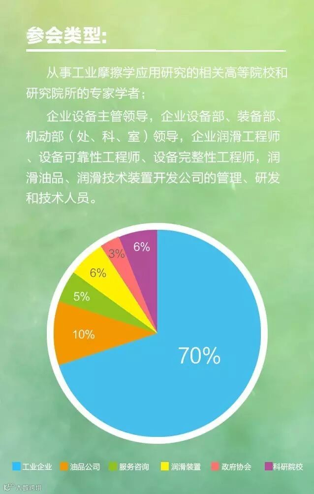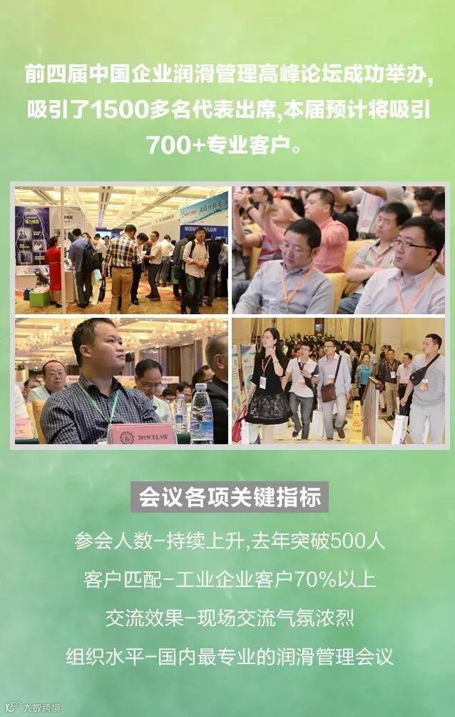 前四届论坛成功举办,吸引了1500多名代表出席。本届论坛继续依托工业摩擦学服务企业的平台,旨在为中国工业企业、科研院所、高校、润滑油研发与生产企业、油品检测仪器生产商、润滑装置生产商等提供高效、务实的供需对接,技术交流与经验分享。同期举办“可靠性工厂国际展览会”。本届论坛已邀请院士和国际知名专家做主题报告,分享全球领先的润滑管理技术。
