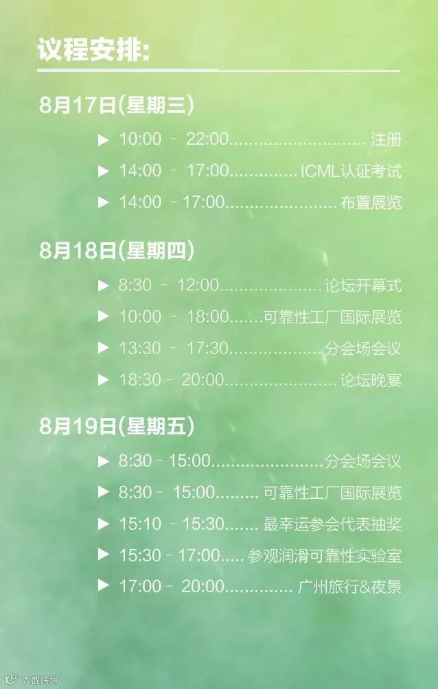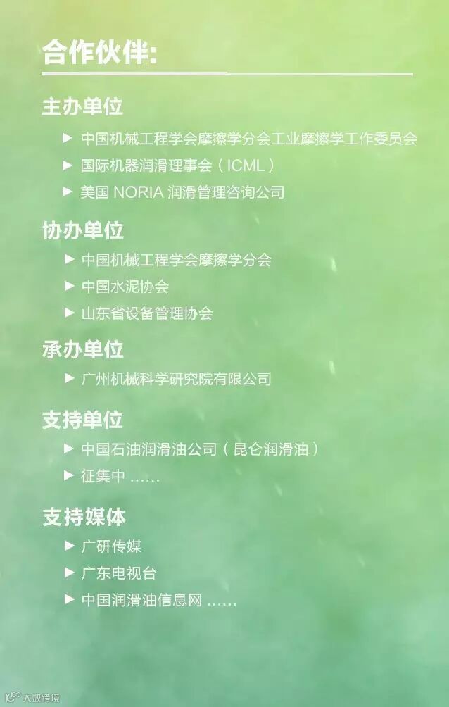 第五届中国企业润滑管理高峰论坛(以下简称2016CELMF)将于2016年8月18日至19日在广州白云国际会议中心召开,8月17日报到。本届论坛由中国机械工程学会摩擦学分会工业摩擦学工作委员会联合国际机器润滑理事会(ICML)、美国NORIA润滑管理咨询公司共同主办,广州机械科学研究院有限公司承办。