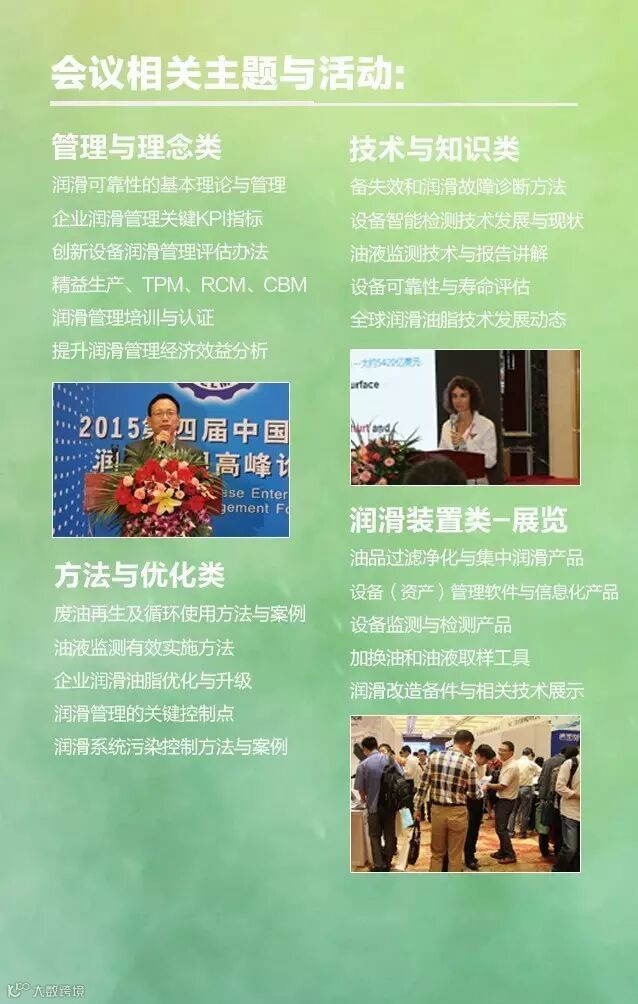 当前,我国经济面临新常态,面临经济速度下滑的严峻考验,但同时又处于第四次绿色工业革命带来的工业结构调整、企业转型升级、发展方式转变、科技信息引领的重大战略机遇。绿色工业革命重点是建设环境友好型企业,企业在润滑方面使用大量的润滑剂给环境造成了破坏。本届论坛的主题:创新环境友好型的润滑管理。该主题主要目标是提升润滑可靠性,减少润滑油脂排放,提高企业盈利能力。