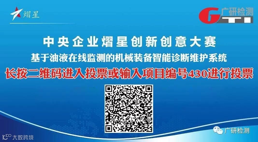 广研检测双创项目“基于油液在线监测的机械装备智能诊断维护系统”在1237个精品项目中脱颖而出,挺进中央企业熠星创新创意大赛决赛。该项目是基于物联网、大数据、人工智能和油液监测的机械装备信息的平台,接下来将会在北京、深圳、乌镇、厦门、武汉、合肥等六大城市依次开展投资对接,这是创新创意项目顺利挺进决赛路演的最后一次“大考”。与此同时,网络投票通道也正式开通,广研检测期待您投上宝贵的一票,以及转发到微信朋友圈等其他网络平台,以获得更多关注与支持。一人一票,投票截至6月29日23时59分,快来为广研检测双创项目助力吧!