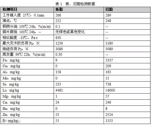 在广研检测对送检的新旧脂进行检测,其各项指标正常,见表1所示。