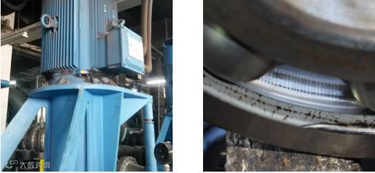 2015年10月广研检测工程师对某电站17台水泵进行振动检测,发现其中一台水泵电机驱动端轴承存在严重故障。现场根据报告建议立即停机,安排检修,发现轴承由于过电流引起轴承的内外圈滚道严重损坏。