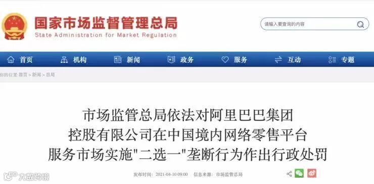 ئەلى بابا گۇرۇھى ئۆزىنىڭ بازارنى ئىدارە قىلىش ئورنىدىن قالايمىقان پايدىلىنىپ، سودا ساھاسدە مونوپول قىلغىنلىقى ئۇچۇن، 18 مىليارد 228 مىليون يۈەن جەرىمانە قويولدى!