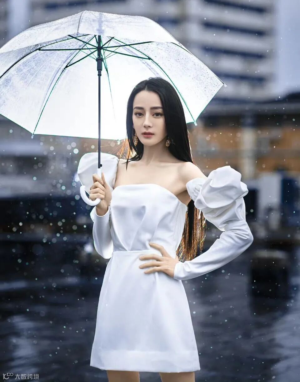 سۈرەتتە تەڭداشسىز گۈزەللىكى ۋە قالتىسلىقى بىلەن ھەممىنىڭ قىزغىن ئالقىشىغا ئېرىشكەن ساھىبجامال چولپان دىلرابائاق رەڭلىك قىسقا مۇراسىم كۆينىكى كىيىپ، يامغۇرلۇق ئاسماندىكى سۈزۈك كۈنلۈك ئاستىدا گۈزەللىكىنى تولۇق نامايان قىلدى.