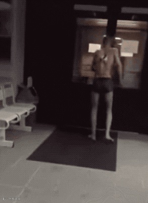 سۈرەتتە بىر روسىيەلىك ئەر،روسىيەدىكى مەلۇم دوختۇرخانا ئىچىدە كالتە ئشىتان كىيگىنىچە دۈمبىسىگە پىچاق ئۇرۇلغان پىتى قانغا لىق تولغان ھالدا سىرتتا مىڭىشقا باشلايدۇ.