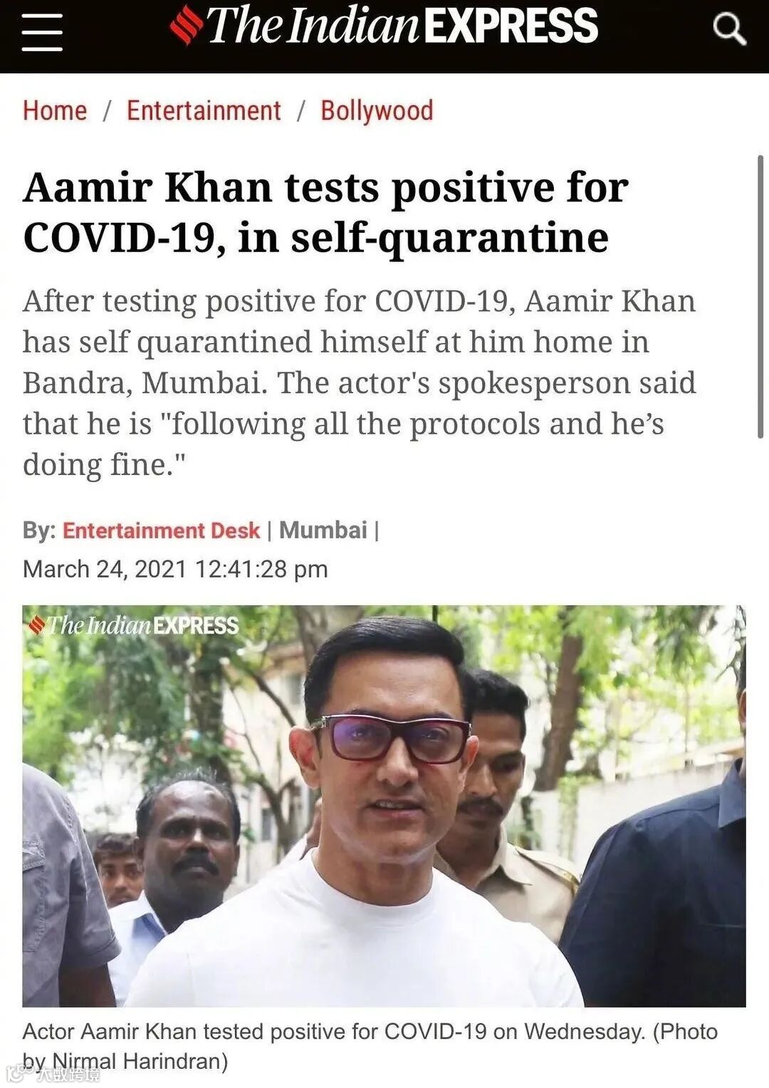 ھىندىستان تاراتقۇلىرىنىڭ 24-مارت خەۋەر قىلىشىچە، داڭلىق ئارتىس ئامىرخان تاجىسمان ۋىرۇسنى تەكشۈرۈش نەتىجىسىدە مۇسبەت چىقىپ، يۇقۇملانغانلىقى ئېنىقلانغاندىن كېيىن ئايرىۋېتىلگەن. نۇرغۇن تورداش بۇ خەۋەرنى ئاڭلىغاندىن كېيىن، بەس ـ بەستە ئىشەنمەيدىغانلىقىنى بىلدۈردى.