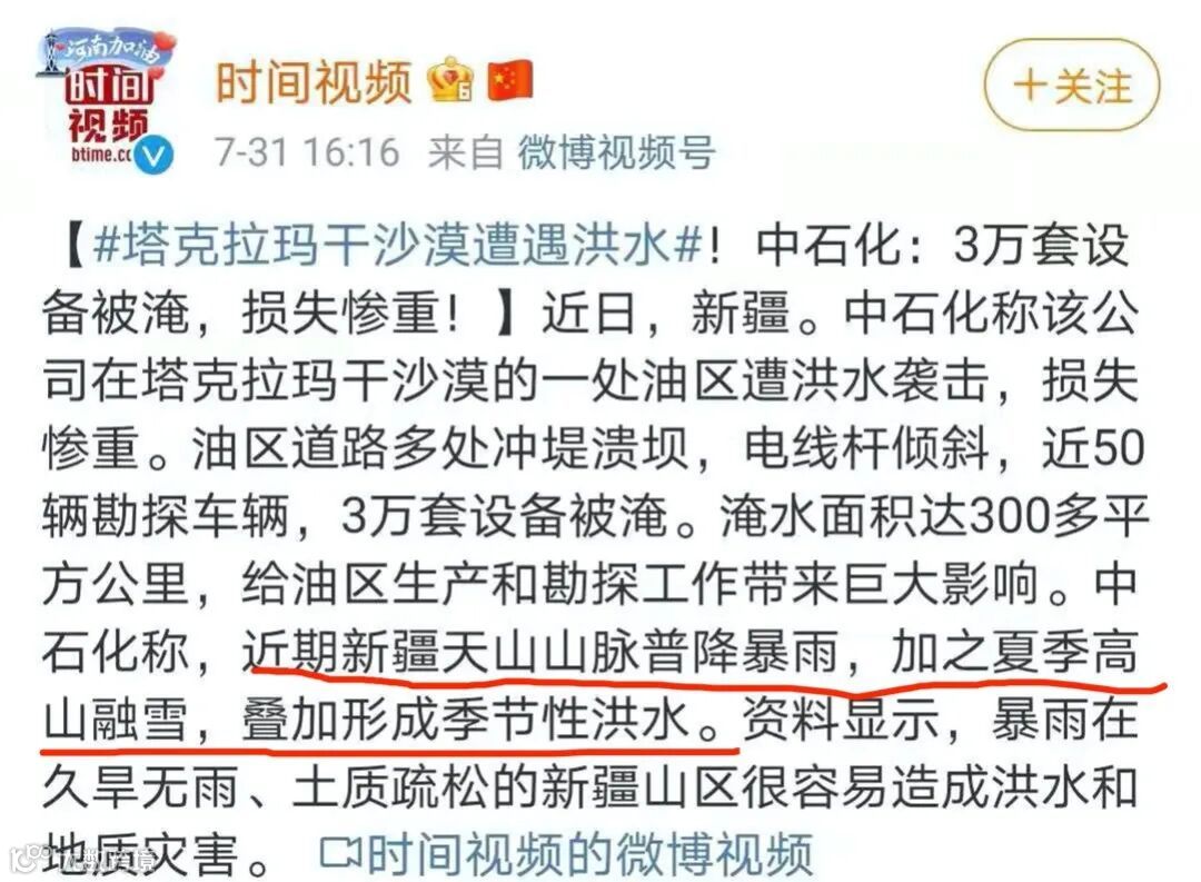 بۇئىشنى 7-ئاينىڭ ئاخىردىن باشلاپ سۆزلەشكە تۇغرا كىلىدۇ7-ئاينىڭ ئاخىرلىرىدا دۆلىتىمىزنىڭ شىنجاڭ ئاپتۇنۇم رايونىدىكى تەكلىماكان قوملۇقىدىكى جوڭگۇ شىخوا نىفىتلىقى قاتتىق يامغۇر تەسرىكەدە 300كۋادرات كىلومىتردىن ئارتۇق يەر كەلكۈندە قالدى.