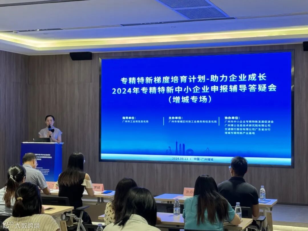 会上,广州市增城区科技工业商务和信息化局、广州市中小企业专精特新发展促进会、交通银行广东省分行、广州博士信息技术研究院有限公司相关负责人及专家从2024年增城区专精特新发展政策、申报政策及指标变化、“专精特新”企业服务体系、金融赋能等不同角度进行了全面的介绍,让与会企业更加清晰地了解了“专精特新”中小企业认定对产业发展及企业的意义,更系统地接受到申报流程指引。
