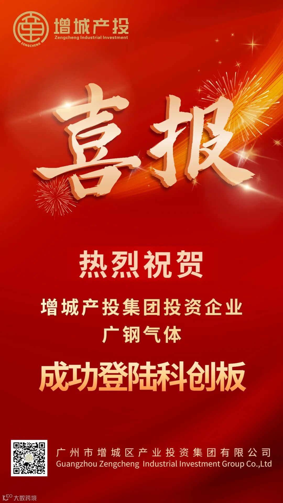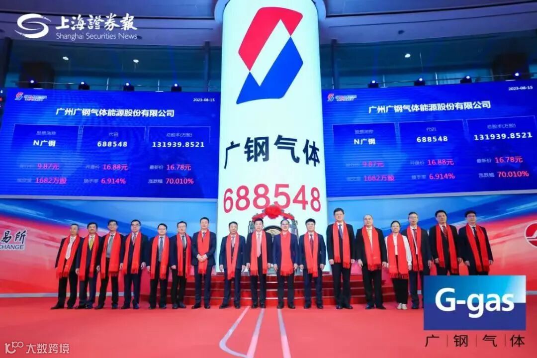 2023年8月15日,广州广钢气体能源股份有限公司(简称 :广钢气体)在上海证券交易所科创板正式挂牌上市,股票代码 :688548。增城产投集团通过旗下基金早期战略投资广钢气体,支持广钢气体发展上市,支持广州市集成电路产业快速发展。