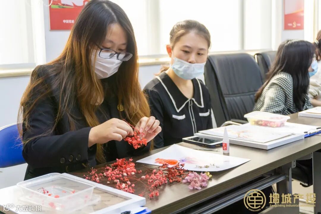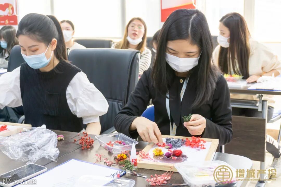 随后开展的压花相框制作培训中,专业老师介绍了压花艺术的来源及发展史,通过展示优秀作品讲解干花制作及压花相框制作的技巧及注意事项。接着,在老师的现场示范和指导下,女职工们经过精巧构思和艺术设计,融合植物学与美学,运用绘色、粘贴等手法现场完成压花相框制作,创造出具有个人特质的作品,体会压花艺术与自然之美带来的温馨之感。